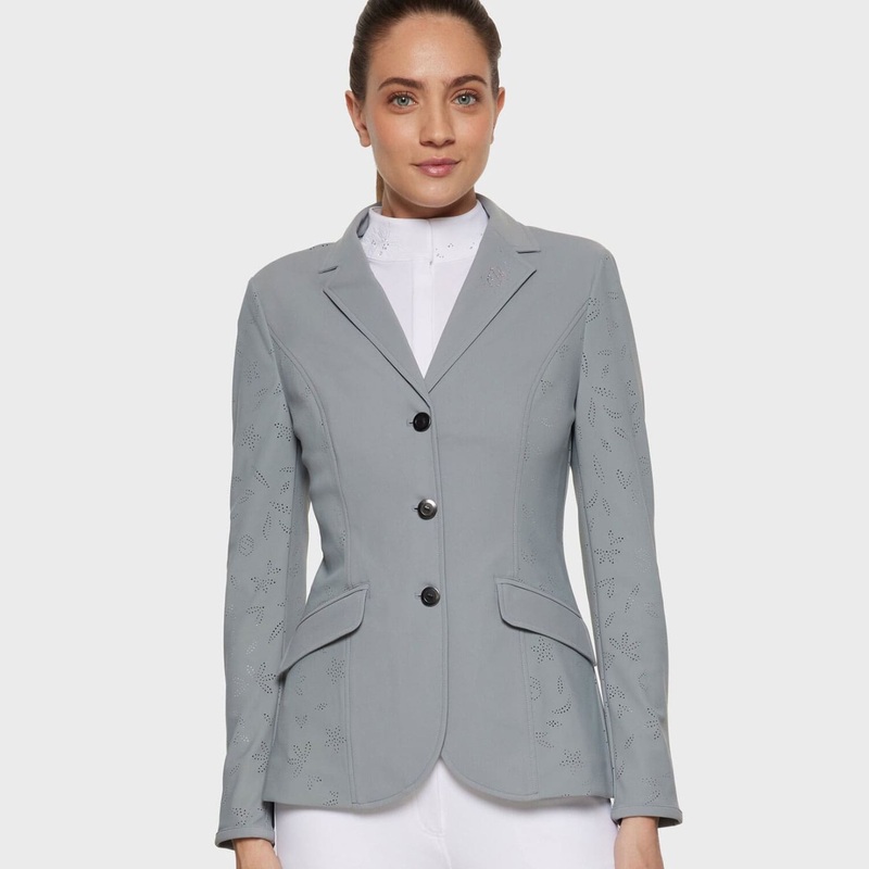 Tailored with a slightly longer length for riders who prefer a traditional silhouette, this show jacket features beautiful blazon, flower and leaf perforations on the side, back and sleeve panels that keep you feeling cool and looking great.