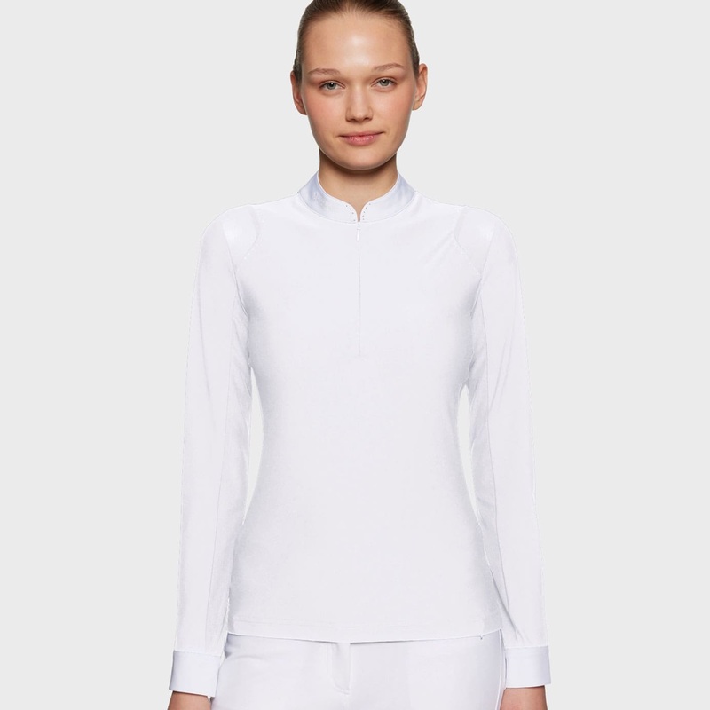 Get an effortlessly glamorous competition look with the Samshield Ysee Long Sleeve Show Shirt in classic White, adorned with dazzling crystal details.
