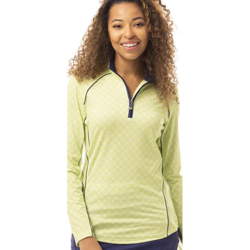 SanSoleil’s SolCool 1/4-zip mock with crystal Zipper Puller is the Perfect Top to protect you from the sun and keep you cool in style.