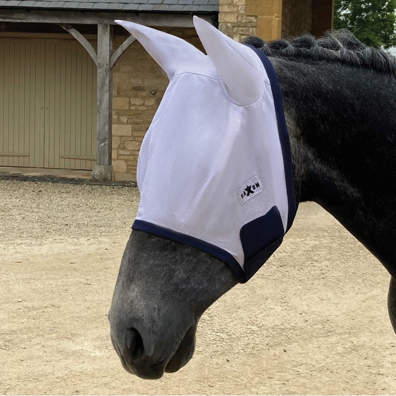 The Saxon Mesh Mask is a fine mesh mask with ear covers that helps to keep your horse protected from small biting insects. Wide adjustable touch tape closure under jaw for a secure fit.Features: Fine mesh mask with ear covers that helps to keep your horse