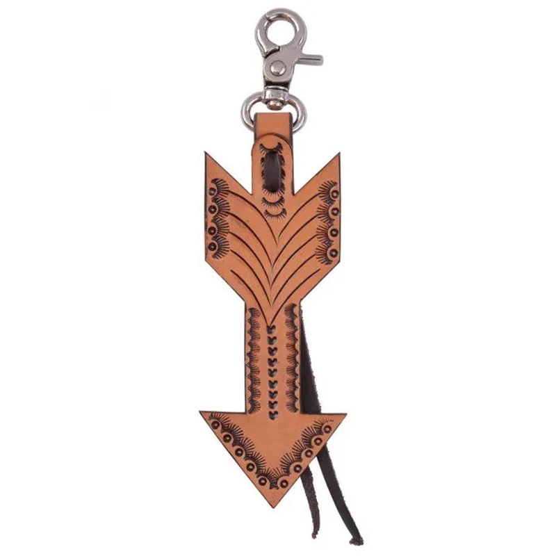 Circle Y Saddle Charm Arrow TooledClip this charm to your saddle, tack, purse, or luggage for a personalized touch. Classic arrow shape with detailed tooling looks great from any distance.Made from leatherHas a simple snap attachment to easily clip on or m