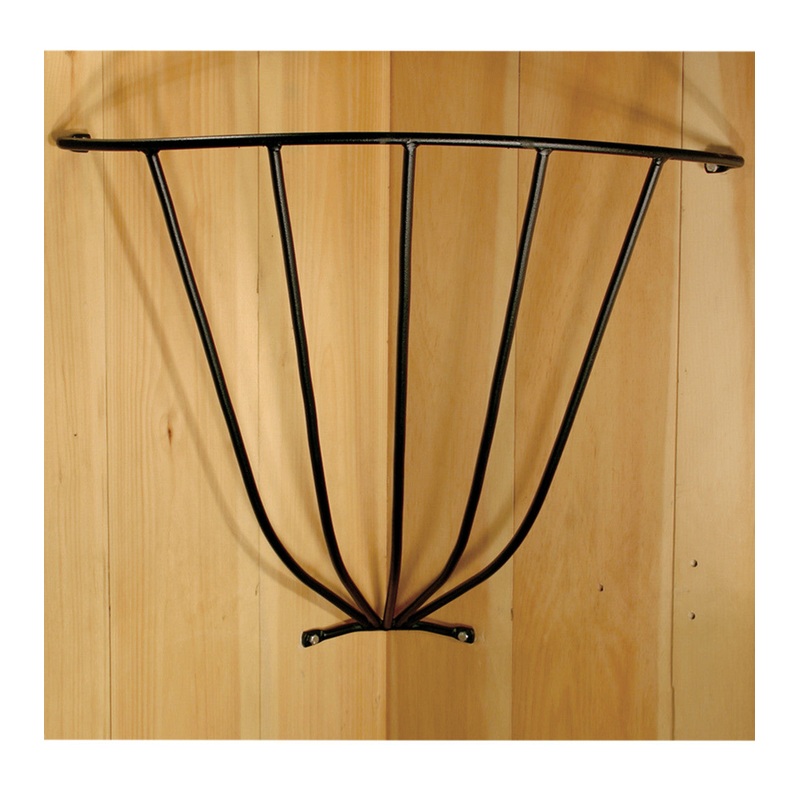 The Corner Hay Rack features heavy duty, powder coated, welded 1/2″ American steel rod construction. Each also features round edges to eliminate injury to animals and a wedge shape design to keep hay under compression as it is removed from the bottom. No more trampled bundles of hay littering your stall floors means no more harmful parasites and bacteria. Made in USA.Measures 31″ Tall x 29″ Wide x 27″ Deep and weighs 16 lbs.This item can only be shipped by truck.
