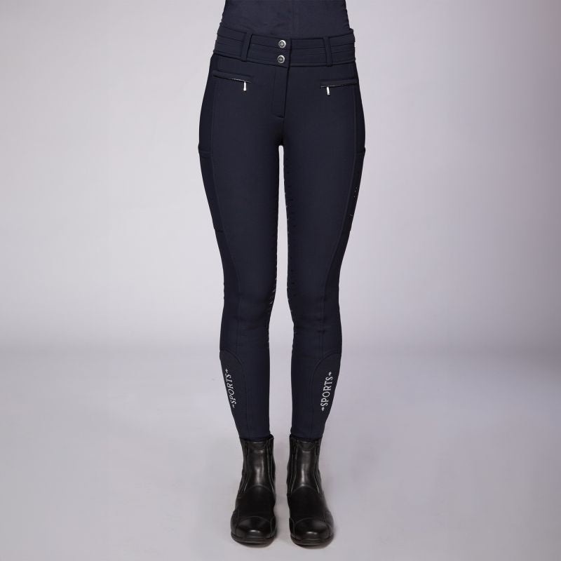 Cold days can come because with the premium winter breeches Winter Heather Style FS by Schockemhle Sports low temperatures wont harm you anymore. The warm design made from stretch material provides a lot of freedom of movement,nevertheless, it retains its shape and is figure flattering. The necessary gripin the saddle is provided by a non-slip full seat silicon print. A mobile phonepocket at the side and elastic leg gathers are ranked among the functionaldetails. The logo rhinestone motif plus a shaped yoke in the back make thisbreeches optically attractive as well.