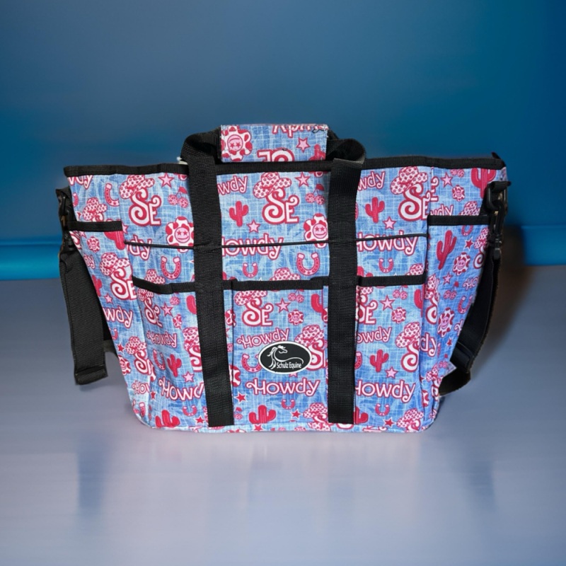 Schulz Equine Grooming Tote- Dolls6 outside pockets to hold sprays, brushes and other grooming equipment. The nylon elastic bands hold taller items upright. Two tall side pockets to hold items. The inside features an open center for maximum storage room. T