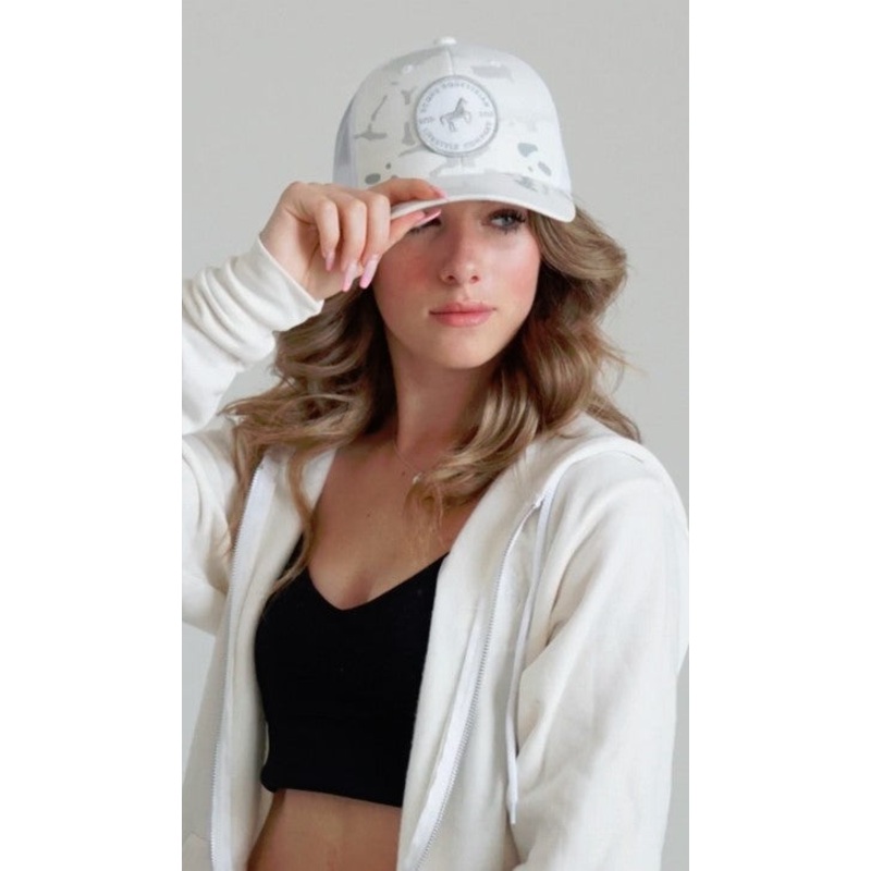 Arctic Camo FlexFit Trucker HatMulticam is 98/2 cotton/spandexStructured, mid-profile, six-panelPermacurv Visor, silver undervisorAlpine has a white undervisorSewn eyelets