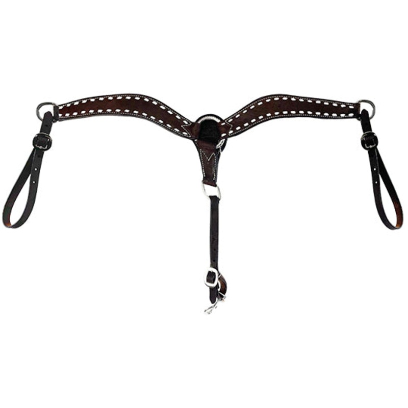 Scott Thomas Saddlery 1" Chocolate Roughout Breastcollar with White Buckstitch1" WideTotal Length: 31 1/2"Adjustable 3/4" TugsChocolate RoughoutWhite BuckstitchStainless Hardware3 PieceTrigger Snap cinch connectorThe Scott Thomas Saddlery 1" Chocolate Roug