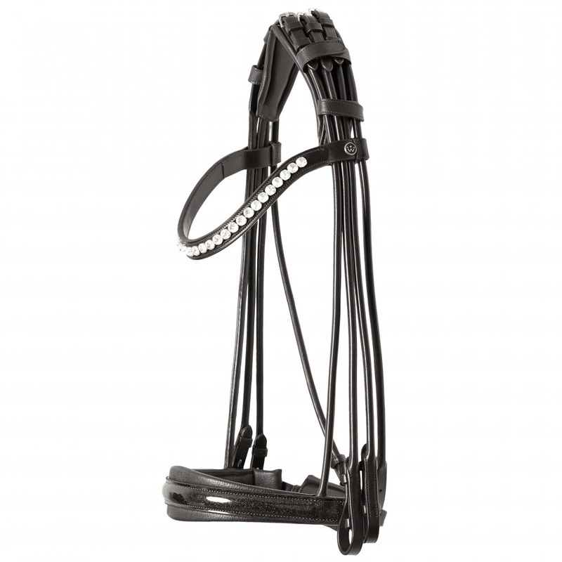 The Noseband is wide in the middle and very narrow in the ends, so there is good space for the bit and to avoid the surrounding nerves. The padding is so soft! The browband is so beautifully curved and with the 10mm Rivoli Crystals it sparkles like a thousand Diamonds.