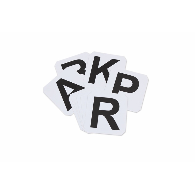 Self-adhesive letters for marking out a dressage arena. Set of 12: A B C E F H K M R S V P. Dimensions: 20cm (8") x 19cm (7.5").