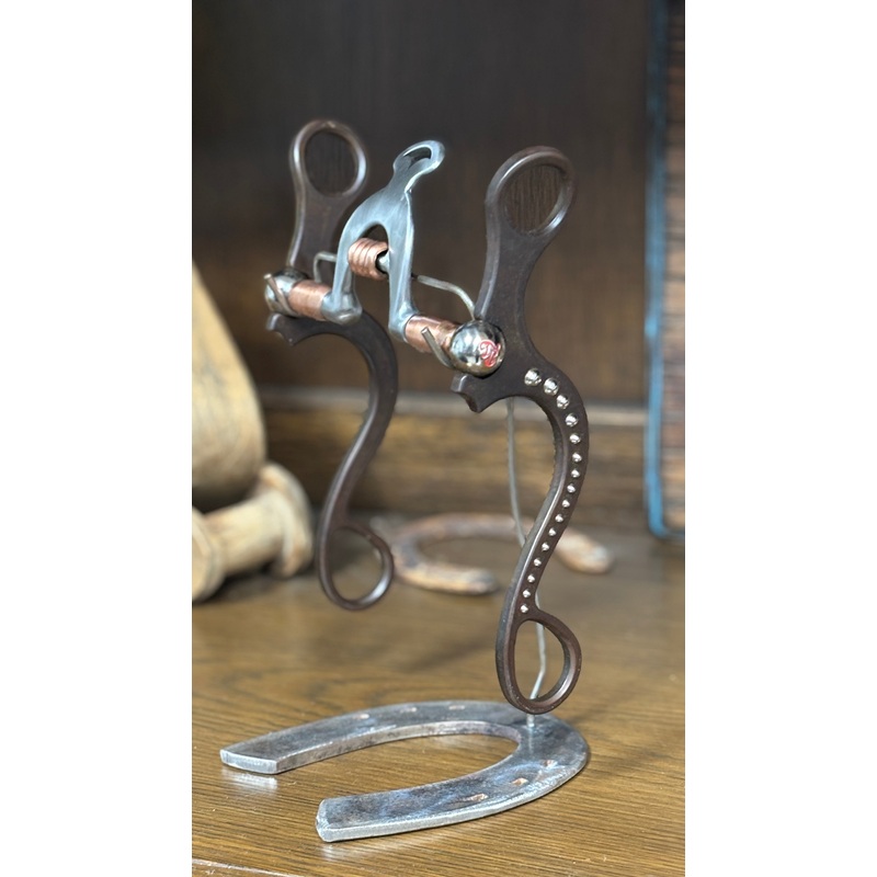 This beautifully crafted bit features a brown and stainless finish with the Sheridan shank. The mouthpiece is our popular Ace of Spades with an inset copper roller. This shank measures 8 1/4″.