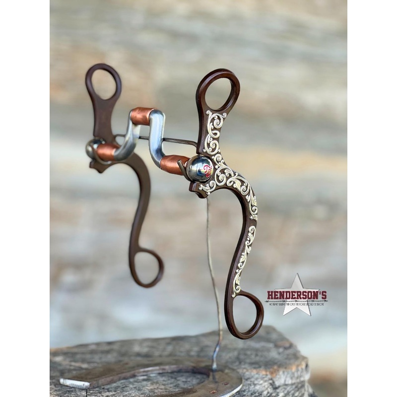 This beautifully crafted bit features a Sheridan Shank in brown finish with full floral overlay. The mouthpiece is our Crown Royal in 5 1/8″ width but can build custom witdths. This shank measures 8″ overall.