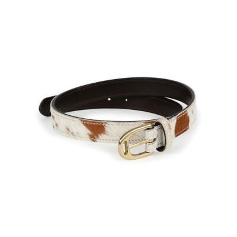 Natural cow hair leather belts with a brass stirrup buckle.Can be easily styled with breeches or jeans.Due to the nature of the product, appearance may vary.Width: 25mm. Belts are measured from buckle hinge to middle holeProduct Code: 9872COWPRT