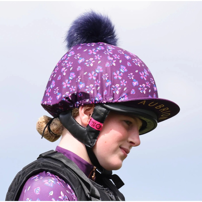 Top off your look with the Hyde Park hat cover. The stretchy fabric fits easily over any size hat and the elasticated hem keeps it securely in place. Topped with a faux fur pom pom and finished with Aubrion prints. The Hyde Park range includes hat covers, base layers, socks and saddlecloths for a fully coordinated look.