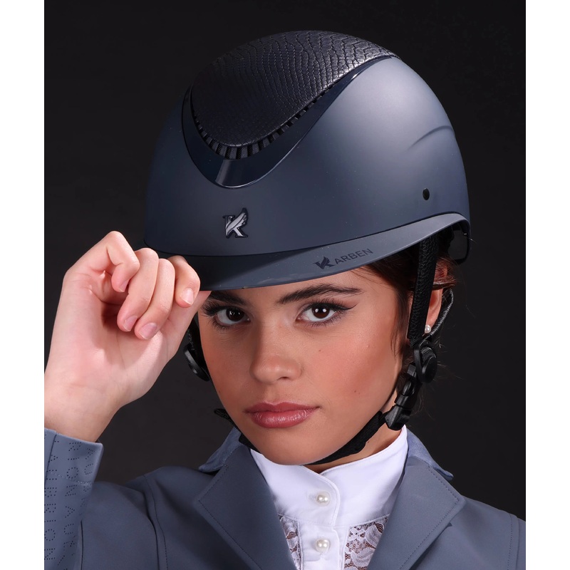 Fine tune your fit with dial adjusted Karben Ellipse riding hats. Lorah offers grown-up style with understated elegance. Faux snakeskin detail in the crown is gracefully set off by the high shine frame and matt shell. Designed with carefully balanced geome