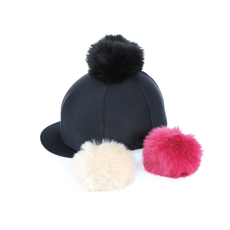 Stretch hat silk with interchangeable fluffy faux fur pom poms for a bit of fun.