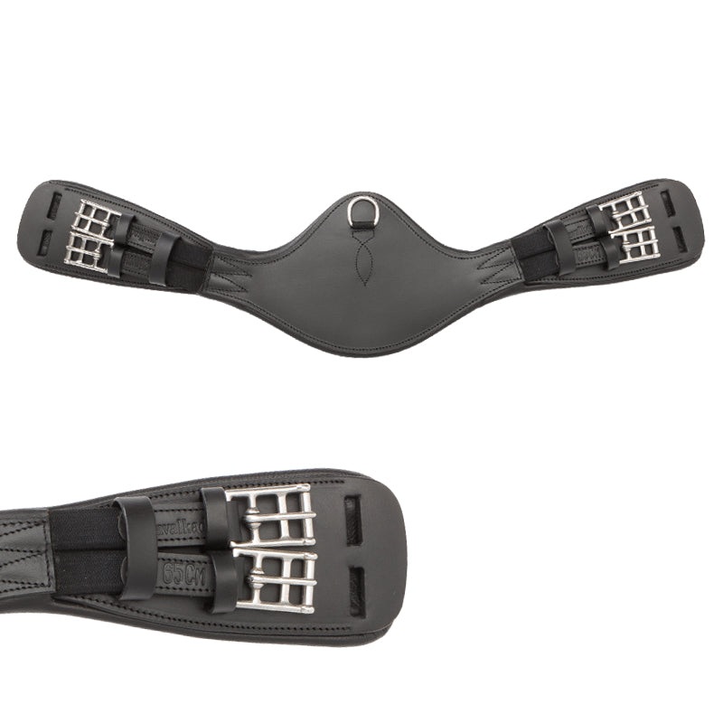 Kavalkade Short Girth Foster Casper with Elastic – a fantastic dressage girth made from premium oiled leather, making it the perfect choice for daily use. Anatomically cut, the girth has a significantly wider breastplate for improved pressure distribution, whilst the cut back allows improved movement. Elastic on both sides of the girth allows easy adjustment, as well as offering further comfort for your horse.