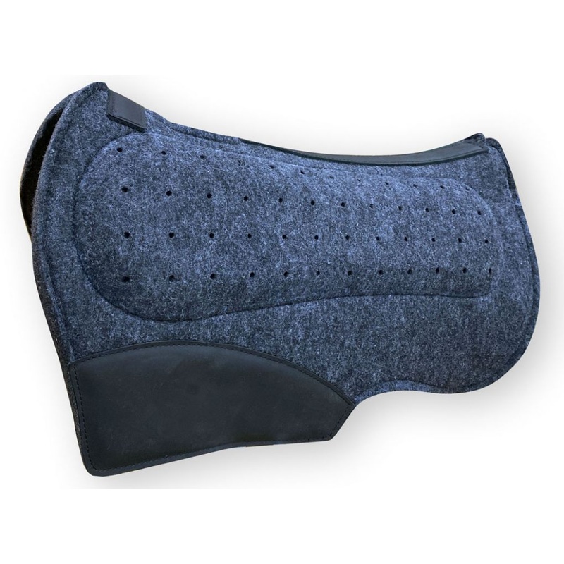 Showman 28 x 31 Airflow felt barrel saddle pad with shock foam bars. Pad is 12 thick and contoured with wither cut out. Features PVC wear leathers. Made by Showman products.CLEARANCEThis is a CloseoutDiscontinued item. Sizes, colors and quantities are limi