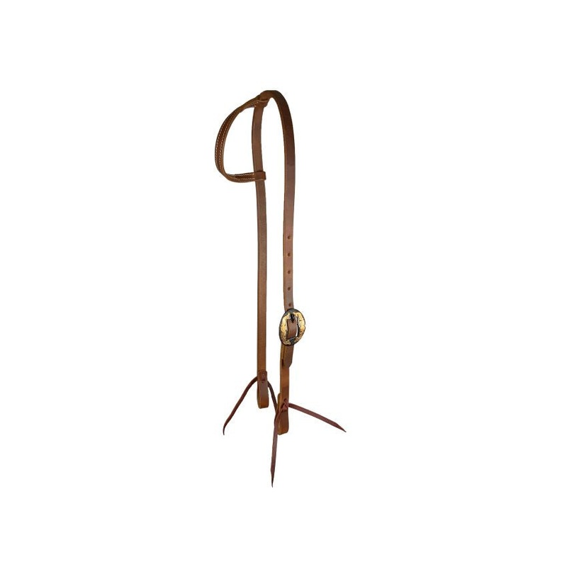 Showman Argentina Cow Leather One Ear Headstall With Round Copper Overlayed Buckle