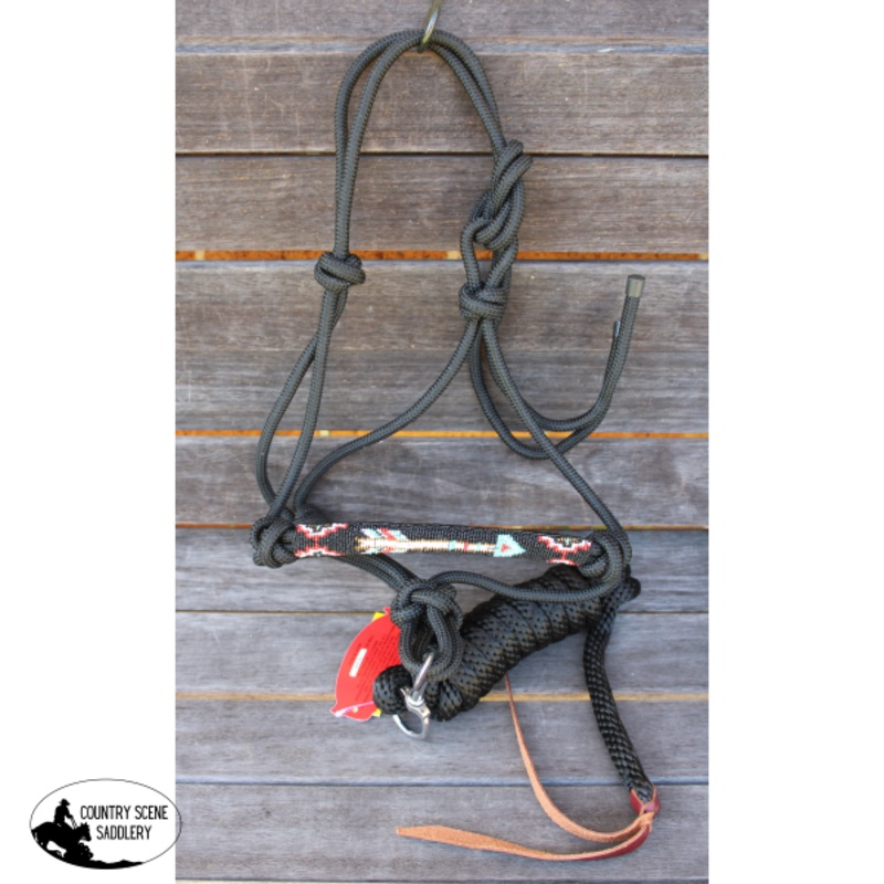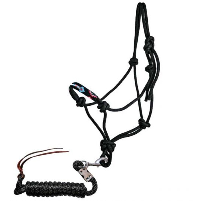 ShowmanBeaded arrow black rope halter with lead rope. Halter features turquoise, red, and gold beads.CLEARANCEThis is a CloseoutDiscontinued item. Sizes, colors and quantities are limited.No refundsNo exchanges on CloseoutDiscontinued items. Products are s