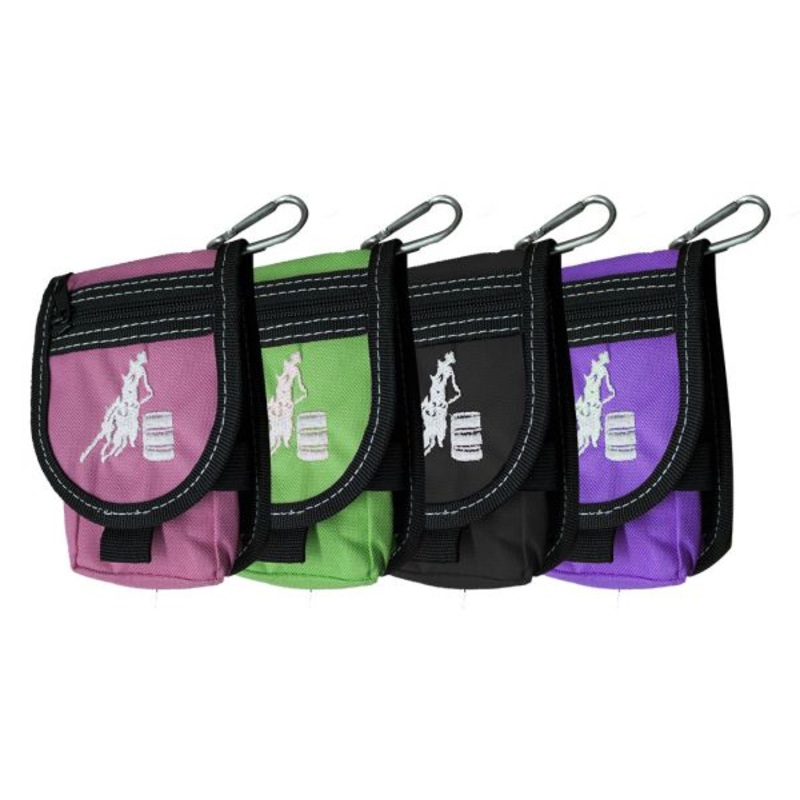 ShowmanCordura cell phone/accessory case. Featuresbarrel racerlogo and several compartments for storage. Has a clip or can be used with a belt. Made by Showman Products.