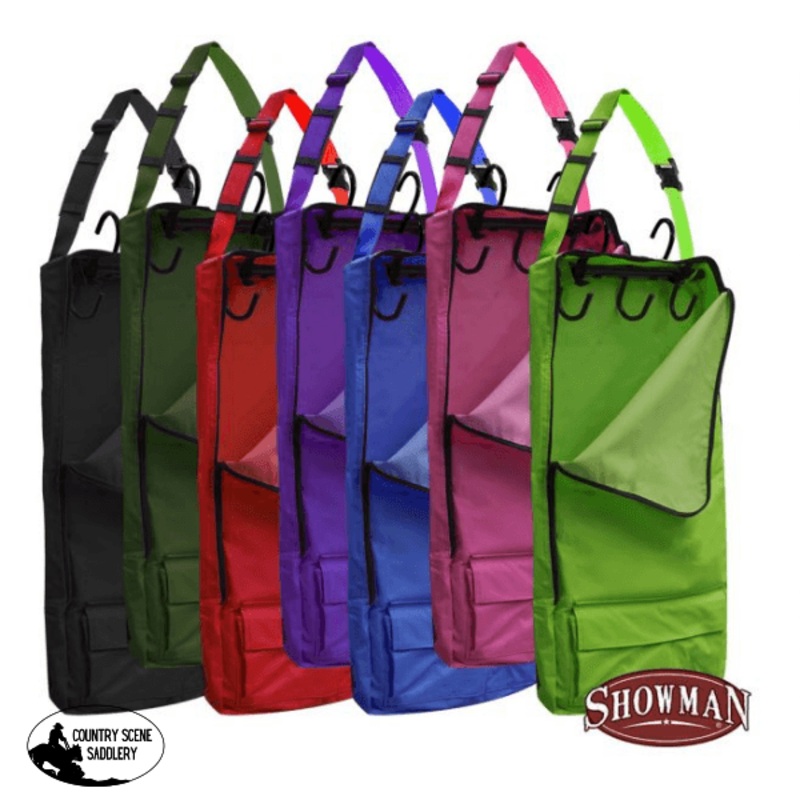 615060Showman Cordura nylon tack carrier. Comes with 5 hook tack bar on top and separate storage on outside. Measures 17" wide and 30" tall.Pre Order USA.