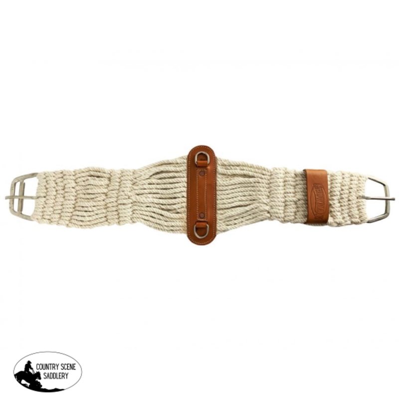 75105ShowmanCotton Blend double weave string roper girth w/ Featuring Stainless Steel roller buckle design.This girth features Cotton Blend natural strings with a Argentina leather center featuring SS D rings on each side. Strands are woven on both sides t