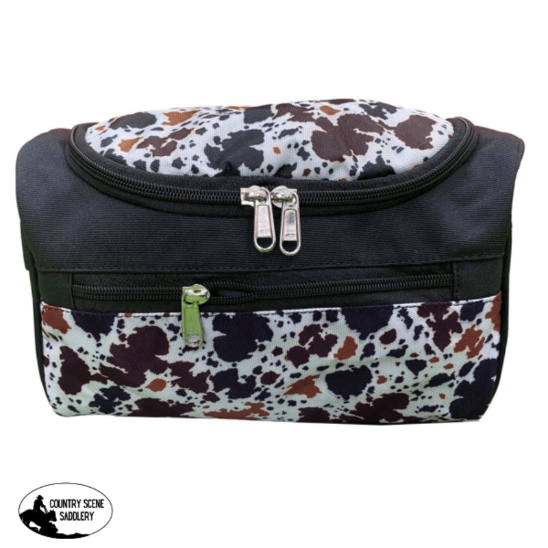 178346Showman Cow Print Hanging Toiletry BagThis gorgeous cow print bag has a wide-open design with organized compartments. Compact yet spacious, this travel bag provides adequate room for all your essentials.It features a main compartment that holds large