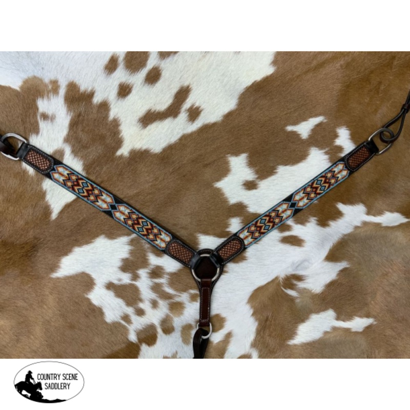 Showman Dark BrownArgentina Cow Leather Breast Collar with Aztec Beaded Inlays.