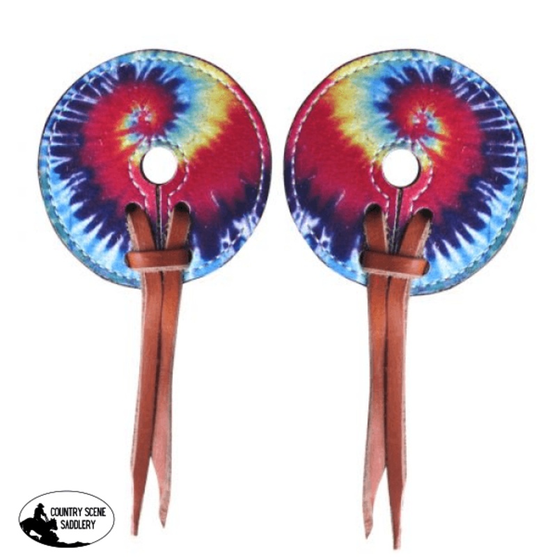 176529Tie Dye Bit Guards. 3" wide printed leather with leather strap closure. Durable, soft and flexible to keep the horse comfortable and prevent the bit from rubbing. PRE ORDER USA Can add to next shipment.