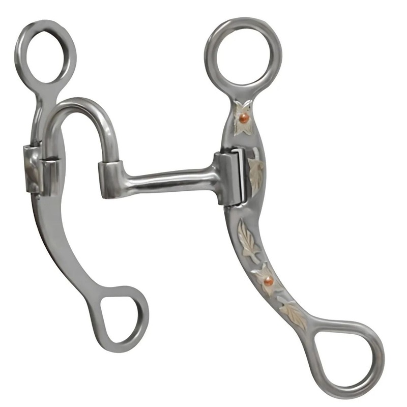 This bit features 7.5" stainless steel shanks accented with a leaf overlay and a 5" stainless steel swivel mouth with 2"swivelport.