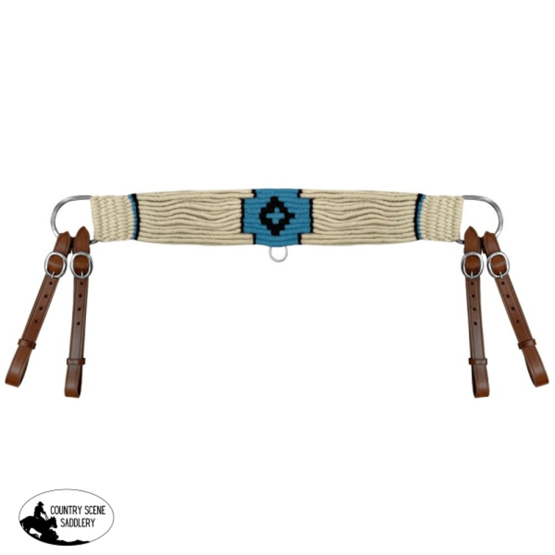 This stunning tripping collar is the perfect combination of style and functionality, designed to provide your horse with the ultimate level of comfort and support during your riding adventures. This collar is made from soft and luxurious mohair wool, known for its natural elasticity and breathability. The twisted wool string construction features a beautiful white, black and blue design that is sure to catch everyones eye.