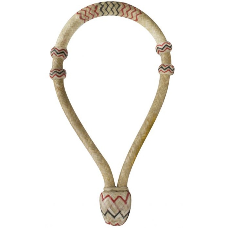 This bosal features natural braided rawhide with red and black rawhide design with a rawhide core. Quality braided rawhide perfect for training or showing. Two pressure point knots placed on both sides on the nose. Bosal measures 11″ Long and 6.5″ wide from inside of the nose band to heel knot. Made byShowman products.