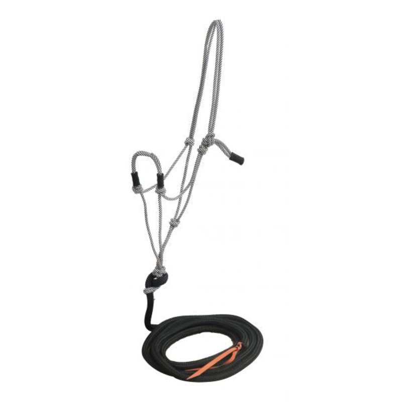 Showman Nylon rope halter with 14ft training lead. This thin braided nylon rope halter features sliding nylon pieces on noseband and a removable 14ft nylon lead with leather popper.var TabbedPanels1=new Spry.Widget.TabbedPanels(TabbedPanels1);