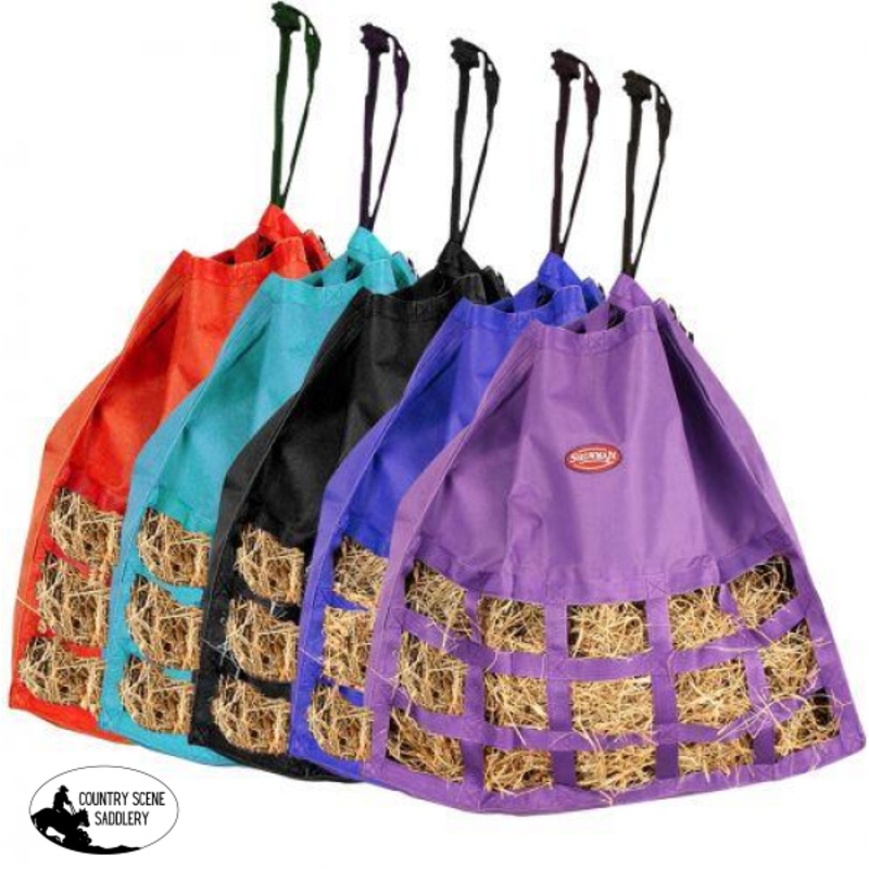 Showman Nylon Scratchless Slow Feed Hay Bag.Medium feed hay bagSpecially designed not to scratch your trailerTop draw string closure opens fully to allow easy top loadingHeight adjustabilityComplete with reinforced webbing loops and a heavy-duty ropeEncourages horses to eat slowly for proper digestionDimensions: 3 12 x 2 12 openingsCLEARANCEThis is a CloseoutDiscontinued item. Sizes, colors and quantities are limited. No refundsexchanges on CloseoutDiscontinued items. Products are sold as is.var TabbedPanels1=new Spry.Widget.TabbedPanels(TabbedPanels1);