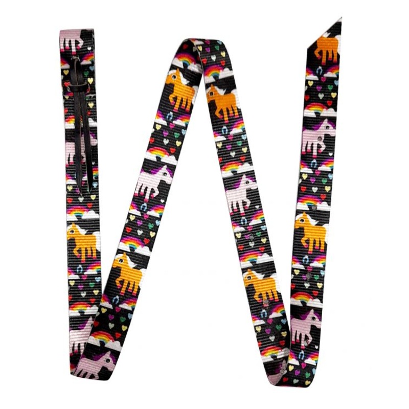Showman PONYPremium Quality Pony & Heart Print Nylon tie Strap. This tie strap is made of premium quality webbed nylon with leather tie. Measures 63 x 1.5.CLEARANCEThis is a CloseoutDiscontinued item. Sizes, colors and quantities are limited.No refundsNo e