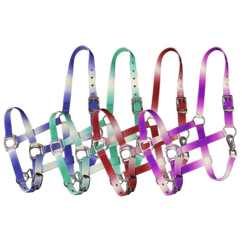 Showman Premium nylon Horse sized ombre halter with nickel plated hardware. This nylon halter features adjustable crown and noseband.AVERAGE HORSE SIZE 800-1100LBSvar TabbedPanels1=new Spry.Widget.TabbedPanels(TabbedPanels1);