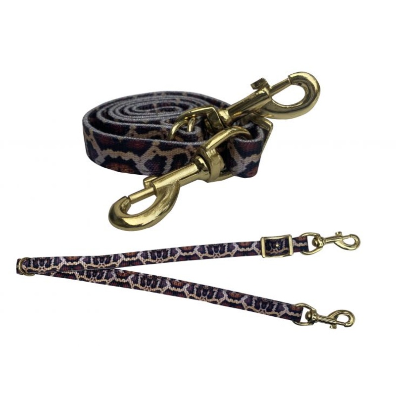 Showman Python Premium nylon easy adjust tie down strap. This strap features a premium 1 nylon with brass plated hardware. Easily adjusts with sliding rings and conway buckle and attaches with swivel brass snaps on both ends. Adjusts 26 -44CLEARANCEThis is