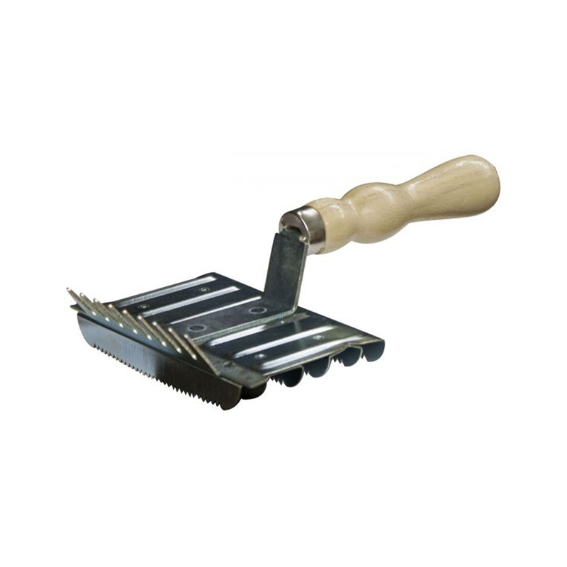 The Showman Square Curry with Metal Construction is the ultimate grooming tool designed to make the shedding process quick, efficient, and comfortable for both you and your horse. Featuring a sturdy metal construction with small teeth, this curry comb is specially crafted to handle the thick coats of horses during shedding season. Measuring 4.75 wide and 8 long, it offers a perfect size for tackling large areas of your horses body while ensuring precision and effectiveness.The small metal teeth are designed to gently remove loose hair, dirt, and debris, breaking up thick patches of shedding hair without causing discomfort to your horse. The metal teeth penetrate deep into the coat, allowing you to reach under the surface and loosen trapped hair more effectively than traditional rubber curry combs. This makes the curry ideal for the shedding season, where your horses coat is dense and full of loose hair.Metal Construction: Features durable, small metal teeth that effectively remove loose hair, dirt, and debris, perfect for the shedding process.Wooden Handle: Provides a comfortable, secure grip, making it easy to maneuver the curry comb during grooming sessions.Perfect Size: Measures 4.75 wide and 8 long, the ideal dimensions for working over large areas of your horses body.Gentle on the Coat: The small metal teeth are designed to penetrate deep into the coat while being gentle on the horses skin, ensuring a comfortable grooming experience.Ideal for Shedding Season: Perfect for loosening thick layers of hair and getting rid of excess shedding hair efficiently.Ergonomic and Comfortable: The wooden handle is designed to be ergonomic, making it easy for you to groom your horse without straining your hand or wrist.Durable Design: The sturdy metal construction ensures long-lasting use, even during heavy shedding seasons.var TabbedPanels1=new Spry.Widget.TabbedPanels(TabbedPanels1);