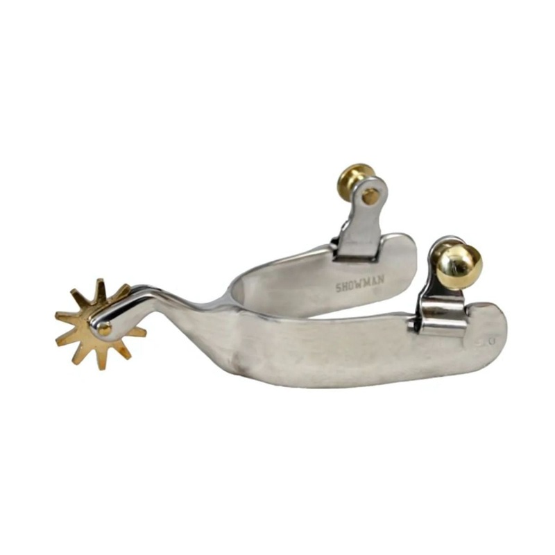 Spur details: 7/8″ band, 2 1/4″ shank including 10-point brass rowel, and 2 3/4″ boot opening. Made by Showman Products