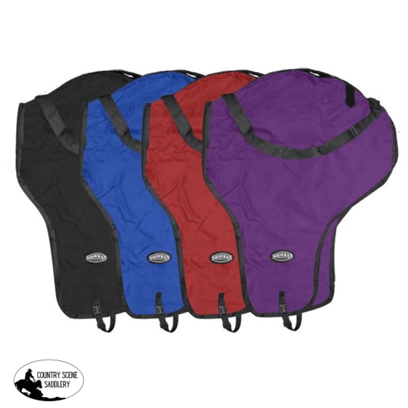 Showman Western saddle carry case with strap. Keep your western saddle clean and protected. Perfect for the barn or traveling. Heady duty webbed nylon materials with nylon trim. Large adjustable shoulder strap and full zipper. Nylon strap with clip helps k