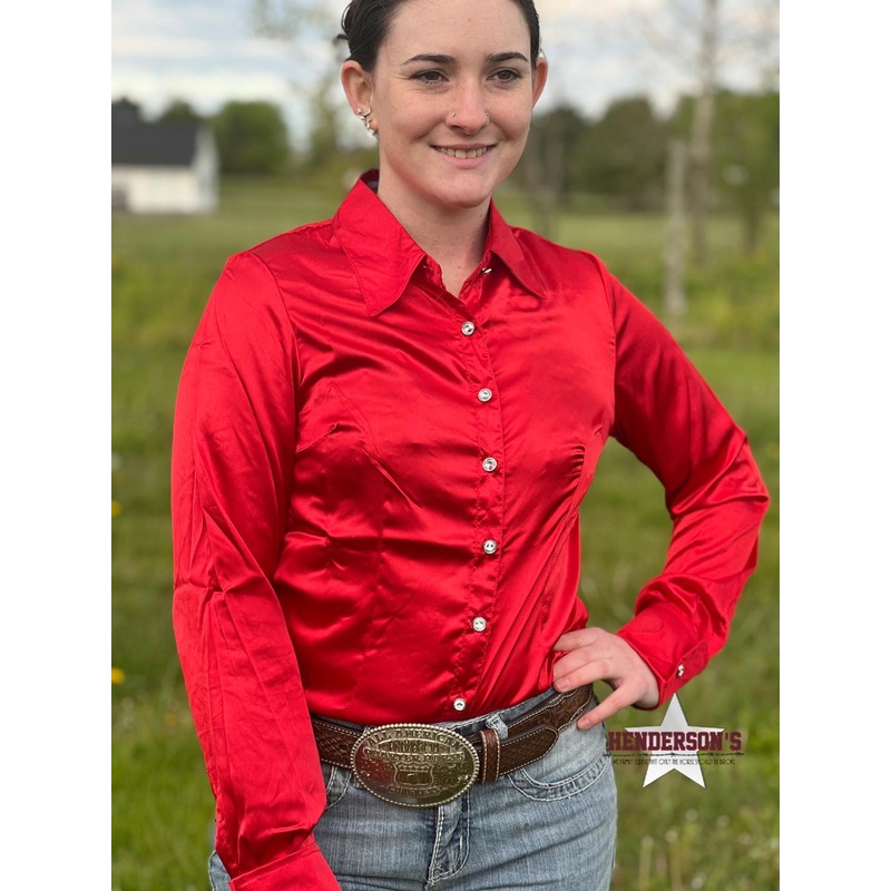 A very classic sleek look for the show pen. Thisshirt has a beautiful sheen to it! Topped off with Crystal buttons to take it over the top! Poly/spandex blend.
