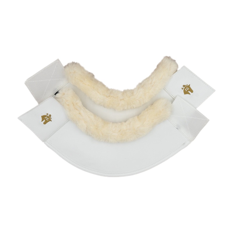 Set of 2, neoprene protective foam core with soft faux sheepskin top trim. Hook & loop closures embellished with 16C embroidery. Wipe clean with leather care products, hose power-wash or machine wash, air dry. Size L (Standard) & XL