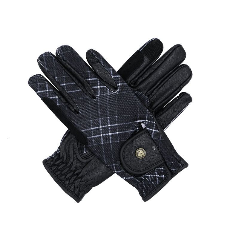 Black Field Plaid stretch & leather gloves.Sixteen Cypress Riding Gloves are expertly crafted for comfort, technical performance and long lasting durability, complementary to the 16C product range in our signature, classic style.The palms are built from ge