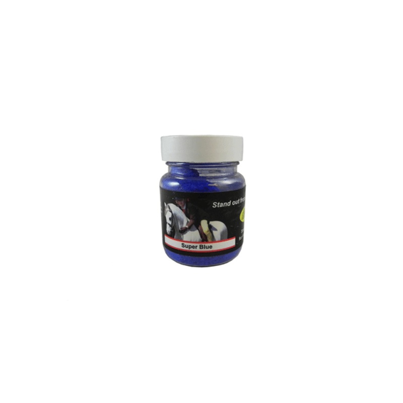 Super Blue by Smart Grooming is a little pot of blue that will give added brightness to whites and greys. Use diluted on manes, tails and bodies by diluting teaspoon of Super Blue powder in approx. 3 litres of warm water. Stir well and then apply to areas.