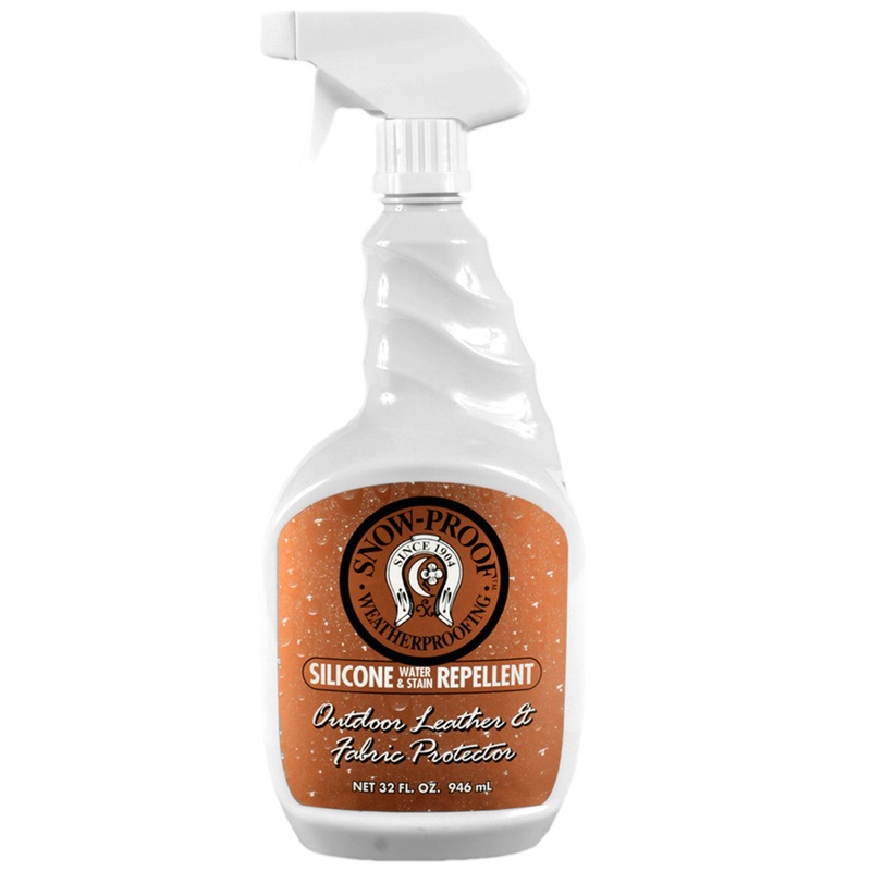 Snow-Proof Weatherproofing Spray from Fiebing's is a silicone water and stain repellent with high silicone content providing extra heavy-duty protection. Use on leather, suede, canvas, nylon, cotton and other fabrics. Keeps water out while allowing materia