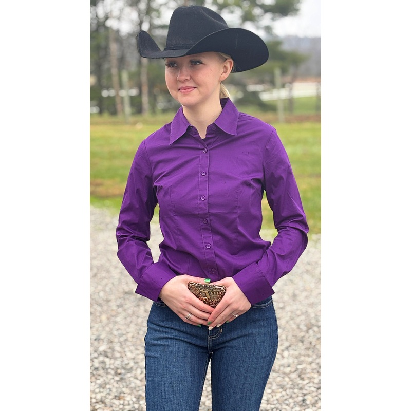 Show String imported fitted front button up shirts with french cuffs in fabulous colors.Cotton blend stretch material that will starch up well for a crisp show ring look. Missy fitSmall - Bust 34 Waist 30 Hip 38 Length 26 Sleeve Length 24Medium - Bust 36 W