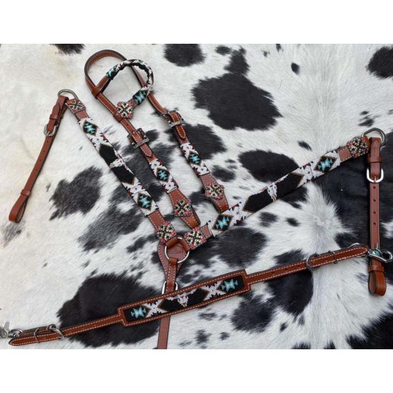SouthWest Beaded black, white, red, teal tack set