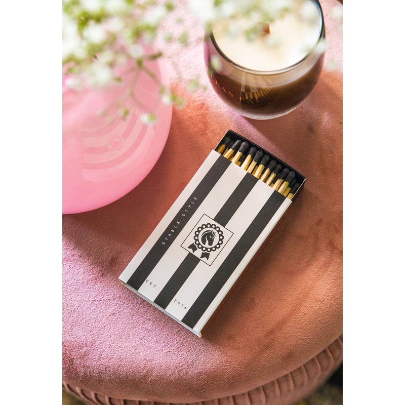 Light up your favorite candles with pretty safety matches. Or leave them on the coffee table to display. They are the perfect addition to the Stable Style collection.Available in black and white stripes.Each box contains approximately 50 matchesMatches are