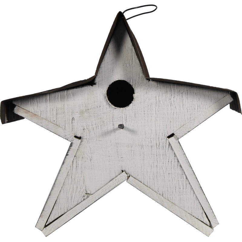 Decorative star birdhouse. Weathered materials create country class. Made in the USA by skilled craftsman.Color:White
