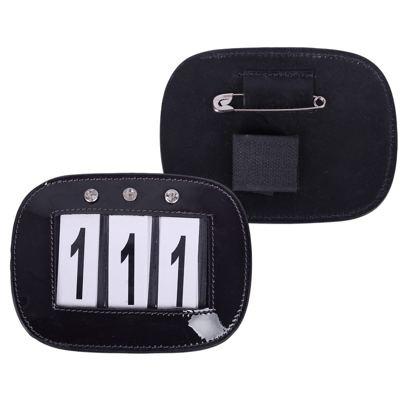 Nooit meer last van onflatteuze wapperende wedstrijdnummers met deze chique nummerhouder. Geleverd met nummertjes en makkelijk te bevestigen aan het hoofdstel of zadeldekje.Nummerhouder van lakleerAfgewerkt met 3 strass steentjesGeleverd met verwisselbare