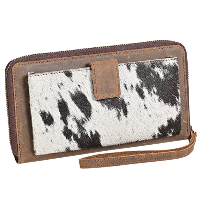 STS Ranchwear Cowhide Bentley WalletGenuine cowhide with genuine full-grain leather trimZip closure with STS pullWristlet handle2 Interior slip pockets10 Card slots1 ID slotExterior slip pocket with magneticThe STS Ranchwear Cowhide Bentley Wallet offers t